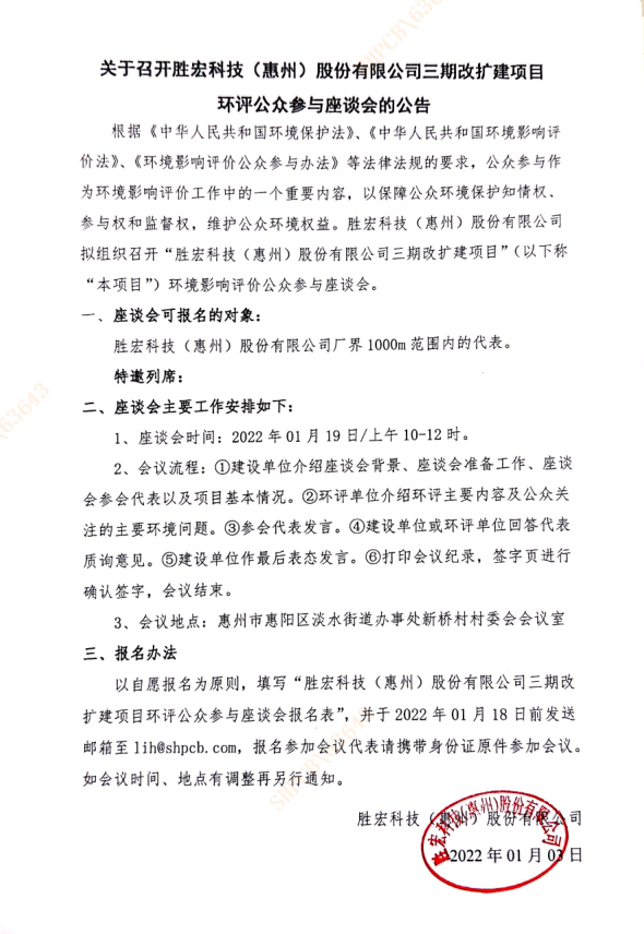 关于召开yabo.com(集团)智能科技股份有限公司三期改扩建项目环评公众参与座谈会的公告